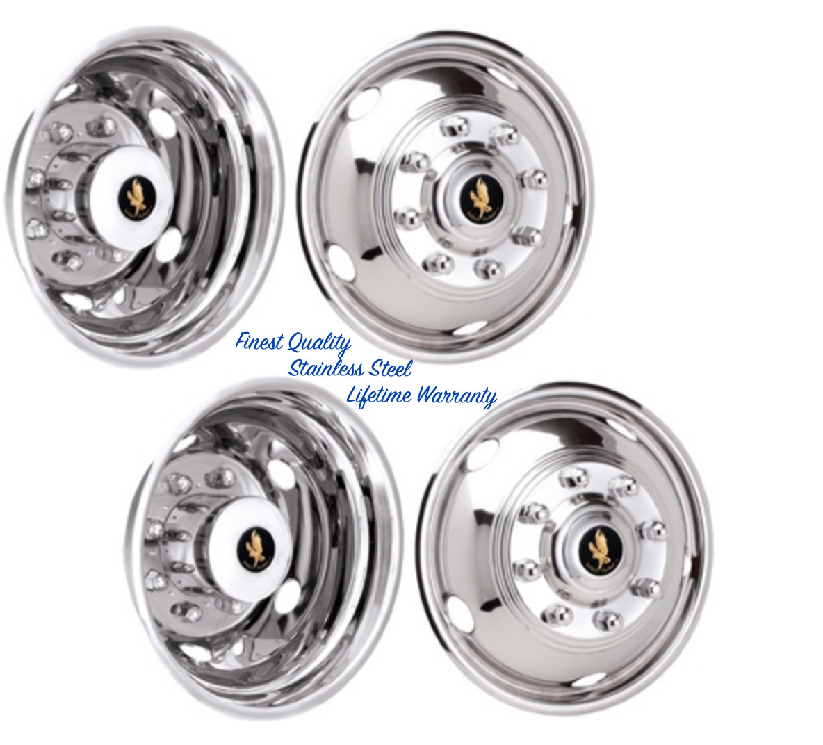 The price is for a brand new set of four rim covers, as shown. It includes our lifetime warranty validation, trademark Eagle resin center emblems, and shipping within the contiguous 48 U.S.A. states. We do not ship outside of this area or to P.O. boxes.