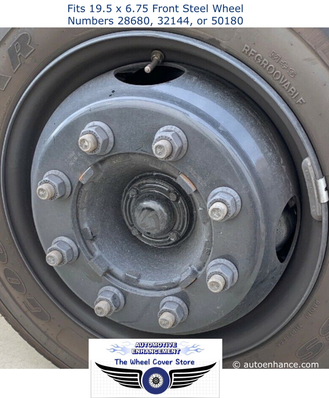 This set of 4 Genuine Eagle® rim cover wheel simulators fits the noted vehicle equipped with the stamped steel wheel numbers listed below. These covers are for painted steel wheels only and will Not Fit Any Aluminum Wheels.   This set fits 19.5″ x 6.75″ with 8 Lugs, 4 Hand Holes, a 275mm Bolt Circle, and 22mm wheel studs. Quick and easy installation utilizing our secure, state-of-the-art D.O.T. over the lug attachment that bolts to the wheels without lug nut removal.   Removable Centers for Manual 4×4 Hubs.   This D.O.T. compliant attachment system eliminates the hassle of the now-obsolete under-the-lug mount, which requires removing lug nuts. Our “over the lug” mount system is now commonly used on heavy commercial trucks.   The price is for one set of 4 Genuine Eagle covers. It includes mounting hardware, installation tool, trademark Eagle resin wheel center emblems, and shipping within the contiguous 48 U.S.A. states. Please be informed that we will no longer process orders for shipment outside of this area, and we do not ship to P.O. boxes.   The set is a perfect fit for Accuride wheel numbers 28466, 28532, 28612, 28680, 32144, 50180, or Maxion wheel number 91831   Before ordering, please verify your stamped steel wheel number, lug nut count, and wheel hole count to ensure fitment. (see the pictures)   To check your wheel number, look on the exposed side of the steel wheel, between the lug nuts, or about an inch from the rim edge. Verifying this number is the best way to ensure fit. Unfortunately, ordering by make, model, or year has often proven unreliable because several factory wheel/tire options are typically available for any vehicle model year.   TIP: To verify your wheel stud size: A 13/16″ socket will Not Slide over a 22mm wheel stud, indicating you have 22mm wheel studs. You can also measure the wheel lug nuts – 20mm wheel studs use 30mm lug nuts. 22mm wheel studs have 33mm lug nuts.   We do not sell knock-off generic, unbranded wheel covers designed to fit a broad range of specifications. Squeaks and rattles can result from a poor fit of wheel covers over steel wheels. In contrast, our line of covers matches the specifications of actual wheel numbers that are in use on given make, model, and year vehicles. This significant attention to detail has enabled us to provide a complete line of wheel covers that set the standard for precise fitment to O.E.M. wheel specifications, thereby ensuring our product’s long-term, trouble-free performance. Verifying that your wheel number, lug nut count, and wheel hole count match our product description will ensure that your new wheel covers fit perfectly.   Please do not rely solely on vehicle make, model, and year, or on memory (if the truck or trailer is currently unavailable), as this can result in ordering the wrong wheel covers. We do not want this to happen to you, so please take the time to physically check your wheels to ensure they match the given description before ordering.   If you need assistance, please get in touch with us, and we will be happy to help. Please include the following information in your correspondence: 1. Your wheel number, including any other stamped rim numbers 2. The vehicle make, model, and year 3. Include your wheel lug nut count and hand count. We can also review emailed photos and advise.   For steel painted wheels only (magnet sticks) – WILL NOT FIT ANY ALUMINUM WHEELS. (A magnet will not stick.)   Our wheel covers are manufactured from high-quality, bright, polished stainless steel and backed by our lifetime warranty. We do not use anything but the best-quality stainless to avoid cracking and the yellow-tint discoloration common to lower-quality, generic, unbranded knock-off covers. Our products will never rust in any climate and rival chrome in appearance.   In the event of damage or an accident, we also make single covers or hardware available to our customers, so you can fix what is required at anytime in the future, rather than buying a whole new set.   Our trademark high-quality resin bubble center emblems dress up the appearance when installed and are your assurance that you purchased Genuine Eagle Flight covers.   Eagle Flight covers meet the highest ISO quality standards. Meeting such stringent world-renowned manufacturing standards is rare in our industry and assures the highest level of fit and finish. As a result, Eagle Flight covers will look the same as the day of installation when the vehicle is retired from service and will never rust or turn yellow over time.   Low-quality, unbranded stainless wheel covers rust over time and typically do not have a warranty, or at best, a minimal one.   Eagle Flight® brand covers are backed by our Lifetime Warranty, which assures you of the highest-quality products with the best fit and finish available. We do not sell inferior quality generic knock-off wheel rim covers.