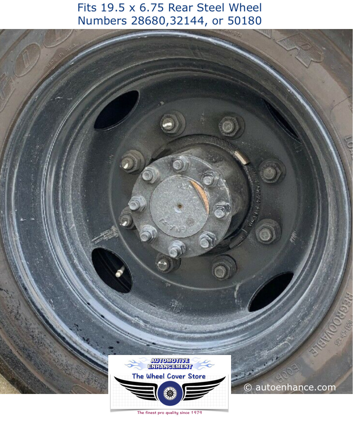 These wheel covers are for 19.5″ x 6.75″ with 8 Lugs and 4 Hand Holes and a Bolt Circle of 275mm with a 22mm wheel stud size.