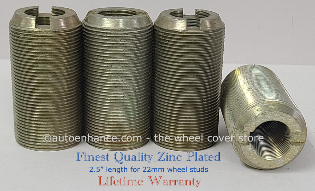 2.5″ length zinc plated steel wheel stud extenders for 22mm wheel studs.